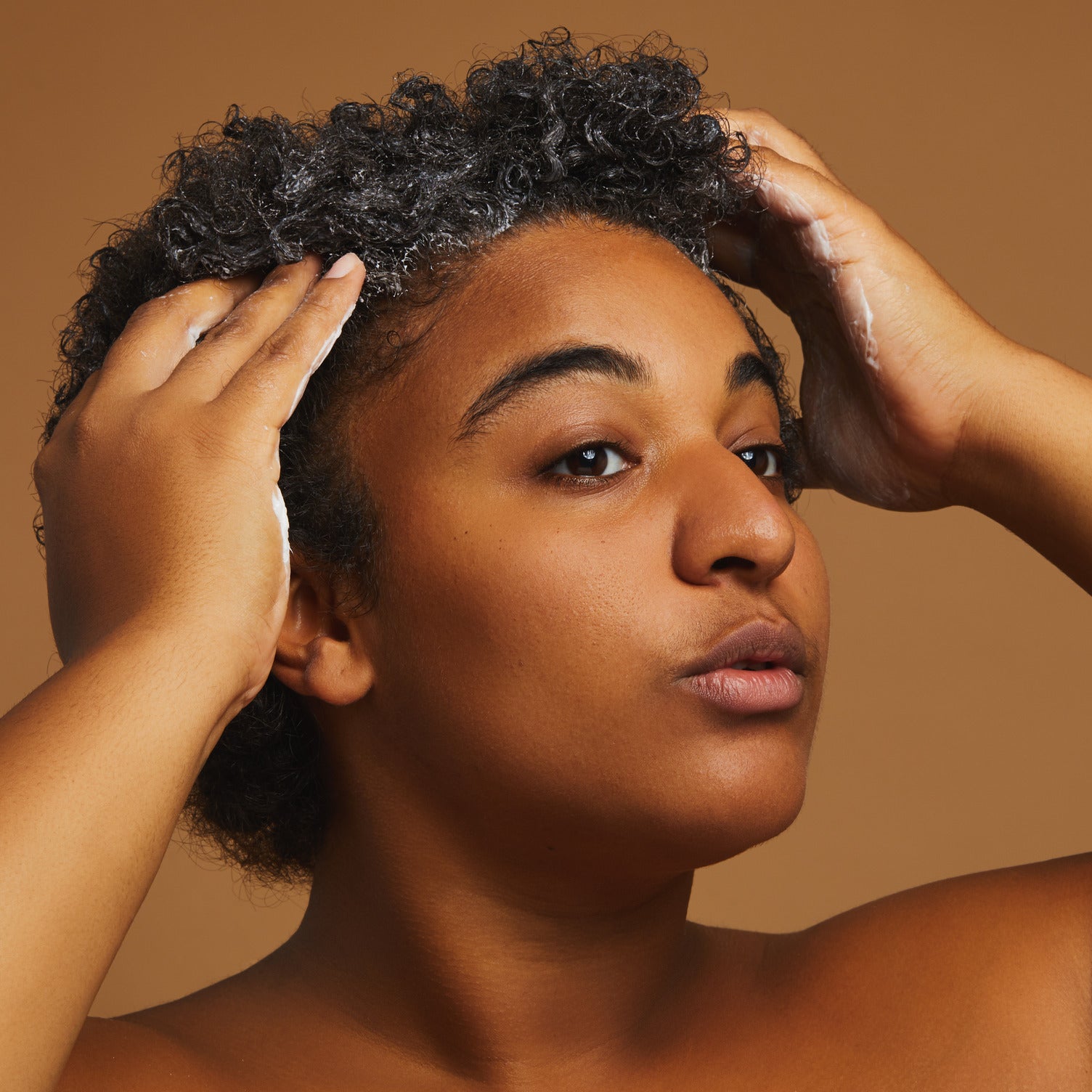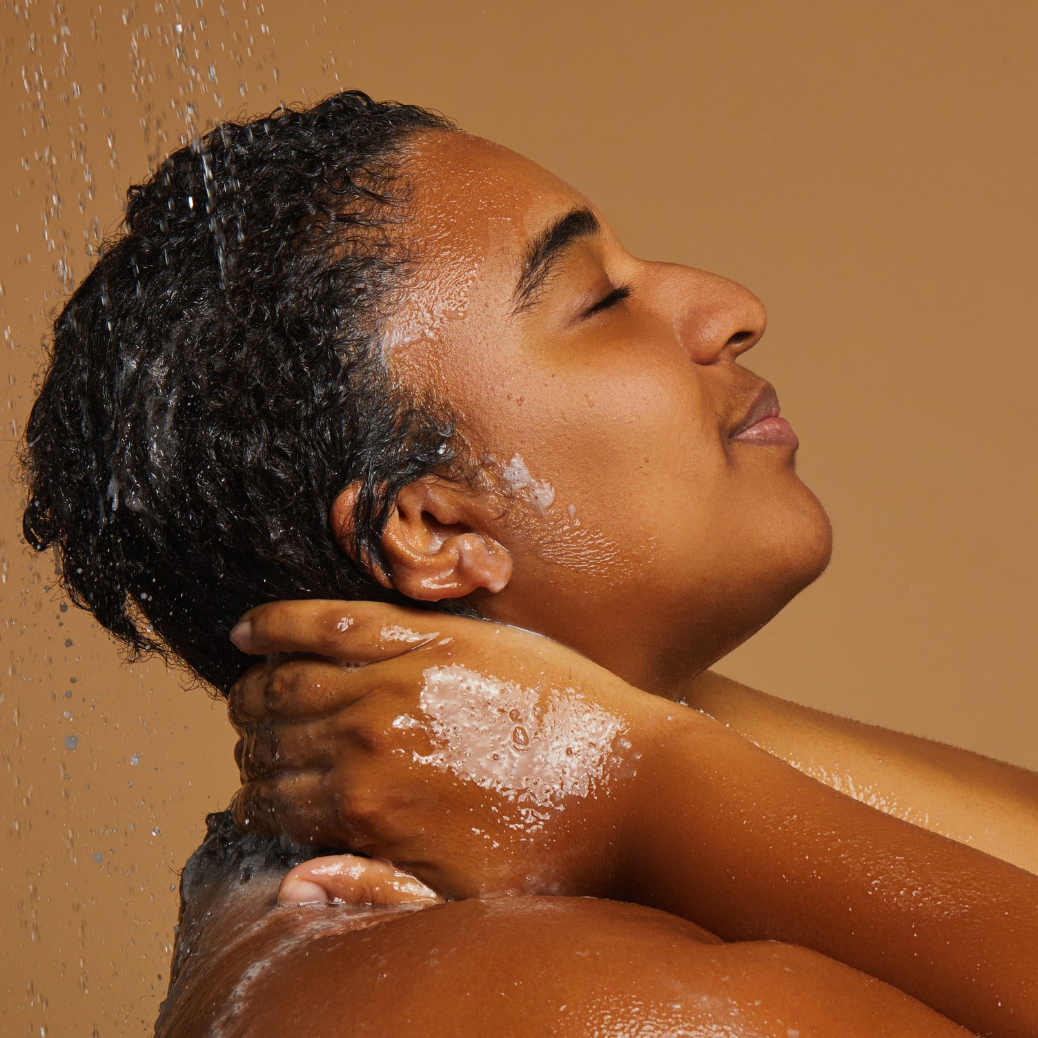 Hop in the shower and cleanse as usual. Rinse your hair with warm water, making sure there's no product left on the scalp.